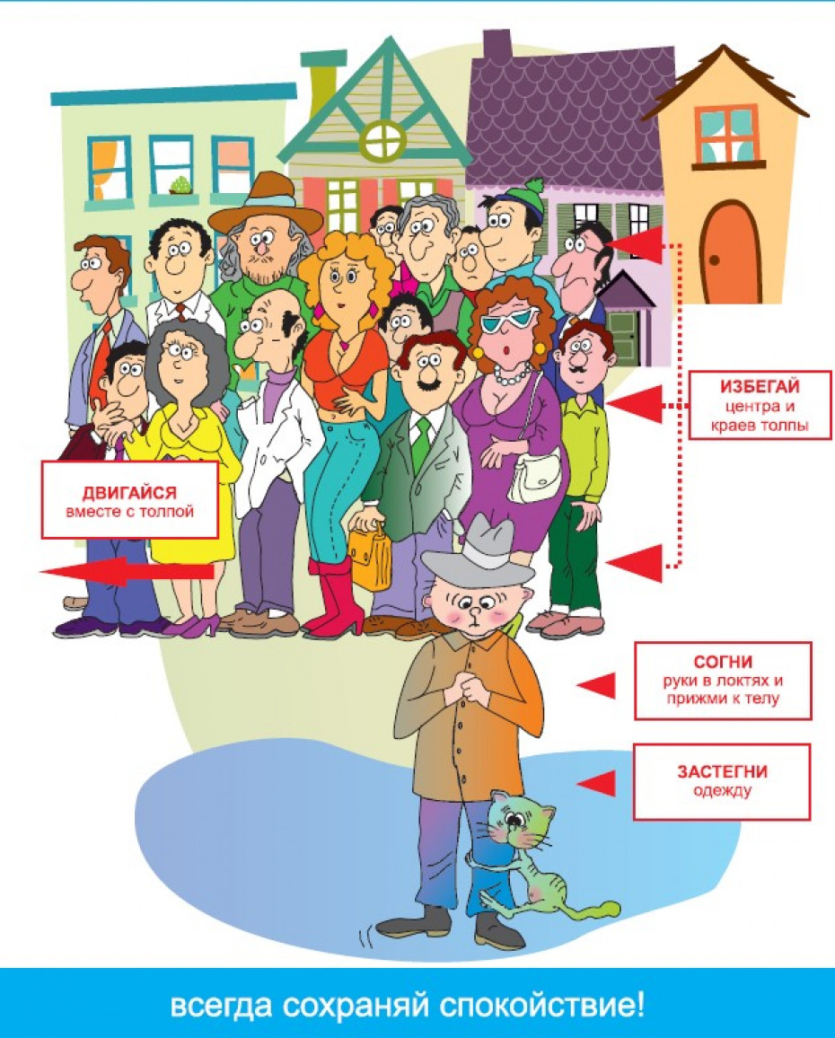 Но если вы уже оказались в большом потоке людей, а выйти из него не представляется возможным, следуйте простым рекомендациям от спасателей: