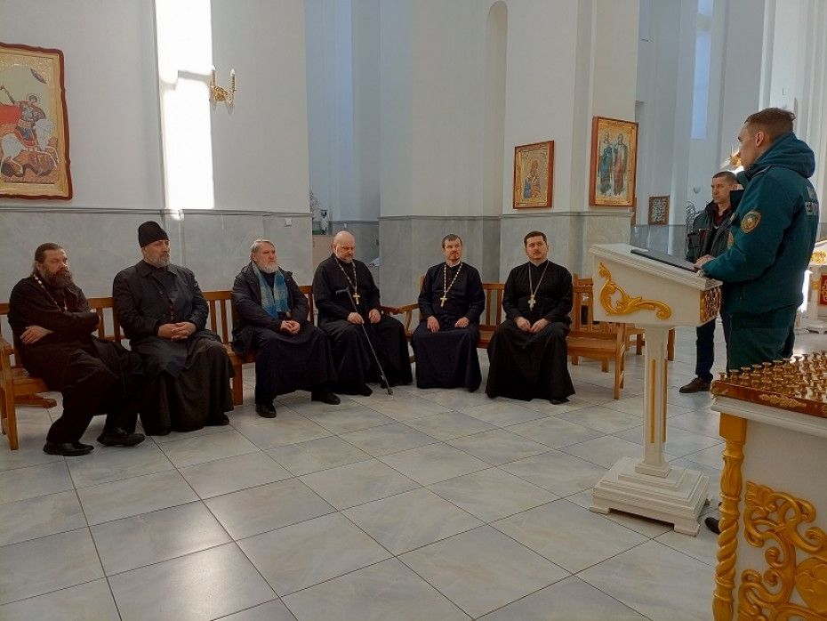 На встрече обсуждались вопросы соблюдения правил пожарной безопасности, обеспечения общественного порядка и организации эвакуации в случае возникновения чрезвычайной ситуации. Спасатели и священнослужители договорились о совместных действиях, направленных на предотвращение возможных рисков и оперативное реагирование в случае необходимости.