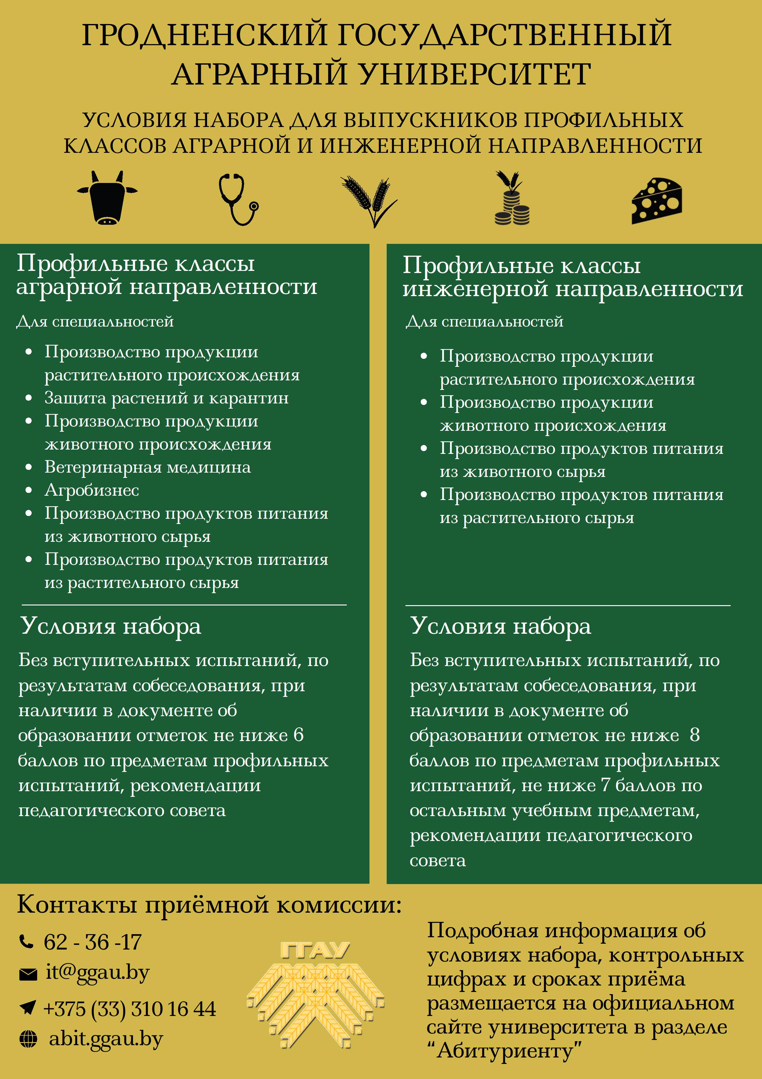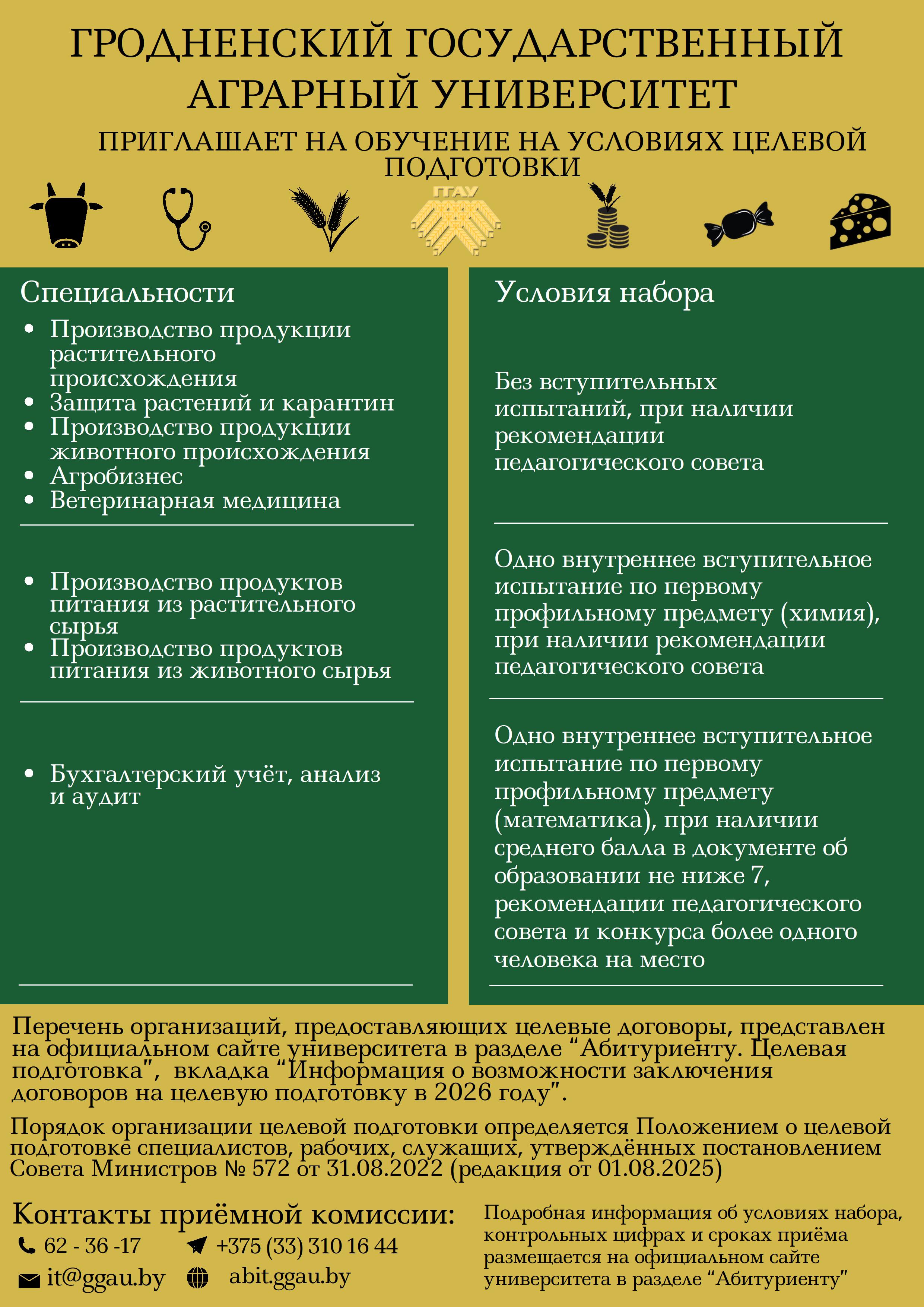 ГРОДНЕНСКИЙ ГОСУДАРСТВЕННЫЙ АГРАРНЫЙ УНИВЕРСИТЕТ ПРИГЛАШАЕТ НА ОБУЧЕНИЕ НА УСЛОВИЯХ ЦЕЛЕВОЙ ПОДГОТОВКИ