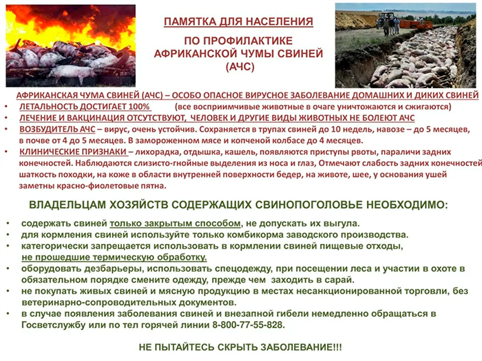 ПАМЯТКА ПО ПРОФИЛАКТИКЕ АФРИКАНСКОЙ ЧУМЫ СВИНЕЙ !!!